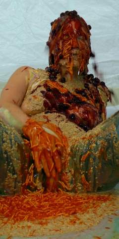 Big Bird the Clown had cake thrown on him by Thefetishgirl